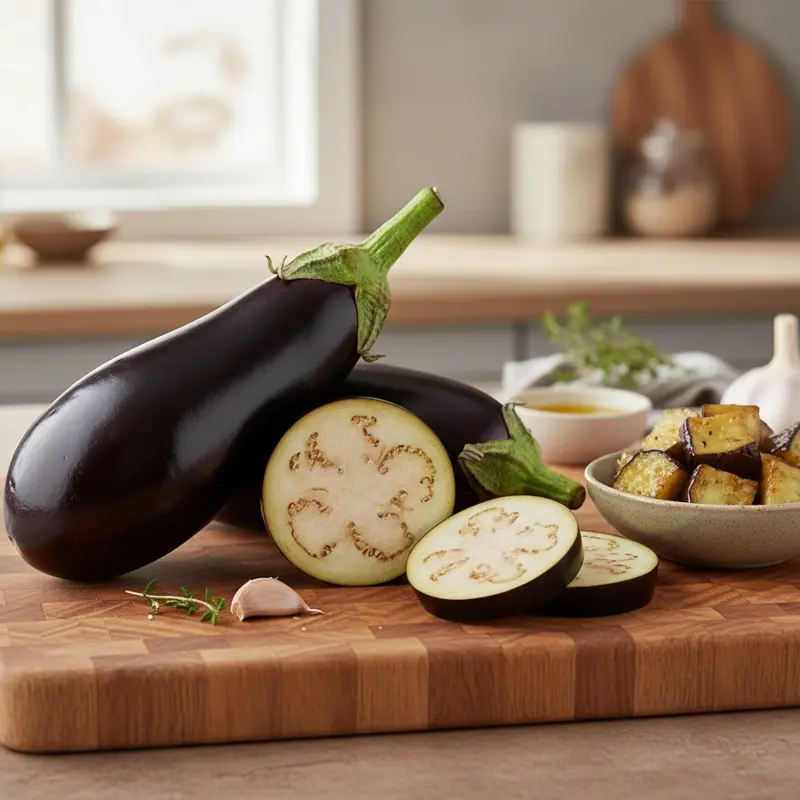 - Pri citlivom trávení: začnite menšou porciou a preferujte pečený alebo dusený baklažán.