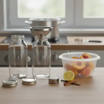 - Poháre & viečka: pripravte si horúce sterilné poháre a viečka (rúra 110–120 °C ~10 min, alebo vyvariť). Horúci nálev patrí do horúcich pohárov.